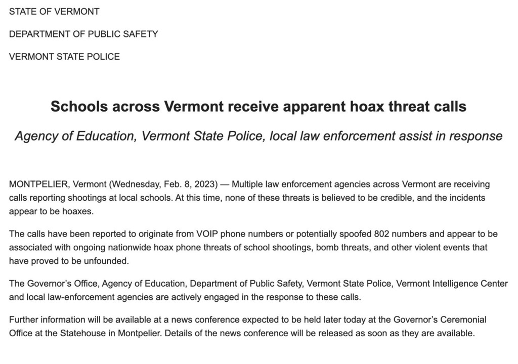We plan to hold school as normal. However, there are some safety precautions we have implemented or enhanced at Castleton Elementary, Fair Haven Grade School and Fair Haven Union Middle/High School in response to this incident: